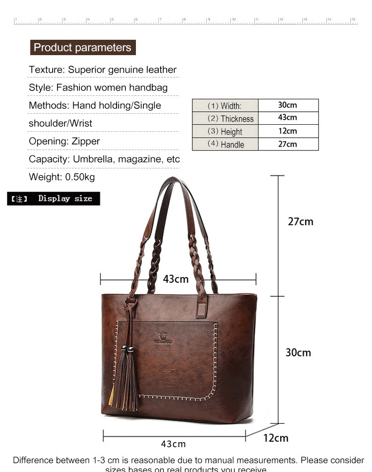 15分鐘前[Weave Tassels Cowhide Leather Bag]Ultra large capacity, all-match design, your most favourite handbag, 2 Pieces: 59! - Flash Sale S$59 FOR 2 items