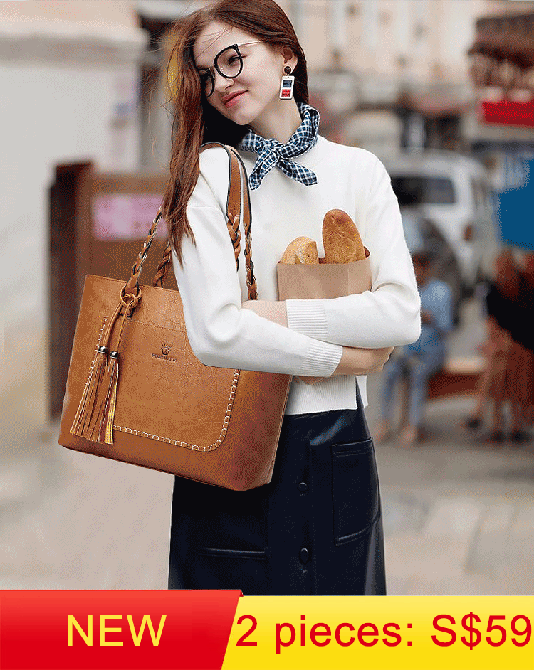 20分鐘前[Weave Tassels Cowhide Leather Bag]Ultra large capacity, all-match design, your most favourite handbag, 2 Pieces: 59! - Flash Sale S$59 FOR 2 items