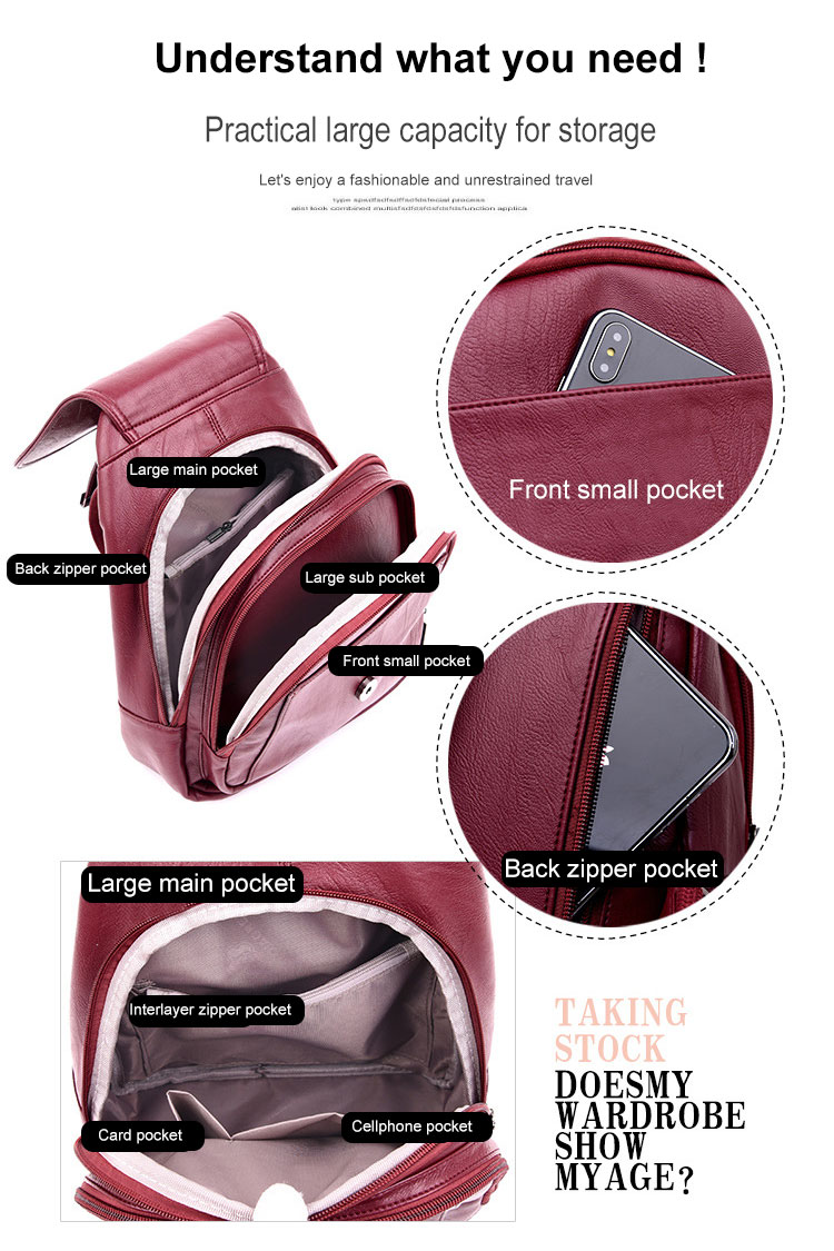 4分鐘前Women Leather Backpacks Vintage Female Shoulder Bag Sac a Dos Travel Ladies Bagpack Mochilas School Bags For Girls Preppy